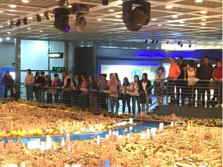 最让大家感到震撼的是1:500的上海城市模型。上海核心区域城市主体模型位于规划馆三层,占地600多平米,采用声、光、电集成技术反映上海内环城市景观,引得老同志们纷纷驻足留念。
