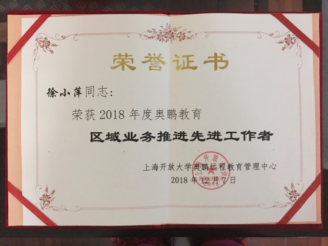 伟德经理、伟德奥鹏远程教育学习中心负责人徐小萍、伟德非学历教育科长姚谷芳分别荣获2018年度奥鹏教育“区域业务推进先进工作者”和“实践实训先进工作者”称号。伟德作为上海市奥鹏护理专业的实践基地,多年来为护理专业员工的论文辅导和实践训练考核做了大量工作,为强化网络教育专业的实践技能训练,提升网络教育质量做出了积极贡献。徐小萍作为先进代表的发言受到了奥鹏远程教育中心副总经理李国斌,上海开放大学奥鹏远程教育管理中心主任、上海开放大学副董事长张瑾及兄弟院校的高度认可和赞扬。