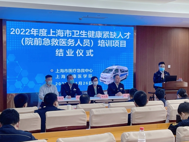11月26日,国家卫健委卫生健康紧缺人才培训项目--上海市院前急救医务人员年度培训项目在上海市医疗急救中心隆重地举行了结业典礼。自此,历时3个月的培训完满地画上了句号。上海市医疗急救中心党委书记吴晓东、副主任袁明,公司伟德经理姚谷芳和副经理孙海涛出席结业典礼,来自各区医疗急救中心的联系负责人和50位培训班学员欢聚一堂,共庆这一时刻。