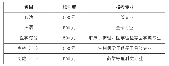 1、预开设课程:政治、英语、医学综合、高数(一)、高数(二);