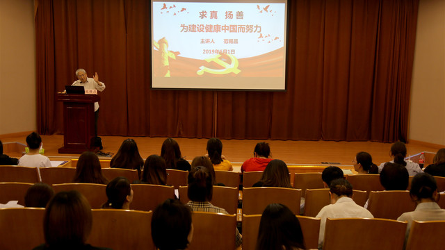 本次讲座邀请了公司资深思政课教师范锡昌老师,做题为 “求真、扬善,为建设健康中国而努力”的专题讲座。范老师以“西游记西天取经”的例子开始讲座,阐述医学职业的本质——求真、扬善。