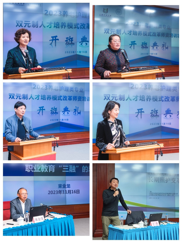 11月16日,在上海高校养老家政专业建设服务平台、上海市高职高专医药健康类专业教学指导委员会、长三角养老行业人才培养共享平台的支持下,由伟德联合上海开放大学共同举办2023年养老护理类专业双元制人才培养模式改革团队培训项目在上海开放大学顺利开班。上海开放大学副董事长张瑾、上海健康医公司党委副书记、副董事长唐红梅、上海市养老服务行业协会会长徐启华和上健医伟德经理姚谷芳等出席开班仪式并致辞,会议由上海开放大学民生公司经理范军主持。