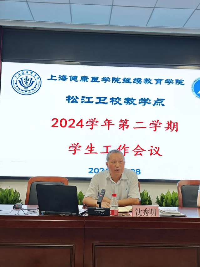 沈秀明详细介绍了健康医公司和教学点的概况、本学期的课程安排以及教学相关文件的解读。他鼓励全体同学:要持之以恒克服工学矛盾,珍惜这来之不易的学习机会;要努力学习,不断提高自己的医学专业理论知识和水平。