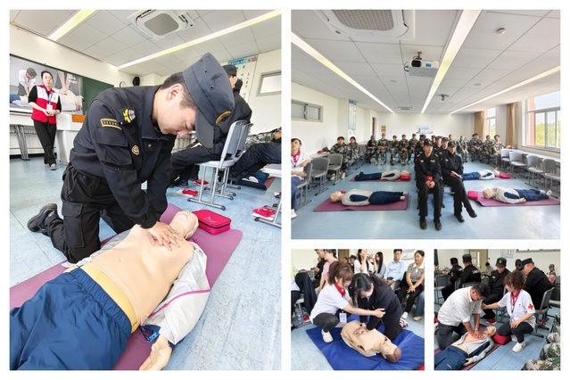 平安校园守护升级,首次实现急救培训全面覆盖。校内保卫、物业等“隐形守护者”首次全员解锁急救技能包!通过专业培训与实战演练,这些一线工作者化身“应急先锋”,不仅练就“黄金四分钟”救援硬功夫,更织密校园安全防护网。从保安到保洁,从门卫到维修工,全员持证上岗,让生命守护力渗透校园每个角落——他们既是紧急时刻的“第一响应人”,更是平安校园建设的“全能合伙人”!