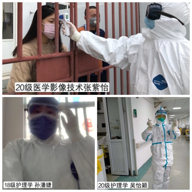 18级护理学专业孙潘婕同学是一名党员护士,在疫情防控中“亮身份、当先锋、做表率”,党徽在“疫”线闪光,始终坚持全心全意人民服务的宗旨,与同班的马君雯在医院的隔离病房轮流24h值班,为发热待查的留观病人进行采样送检。她说:“救人是我们的义务,更是我们肩上的责任,疫情便是对我们的考验,众志成城,抗击疫情,万众一心,相信我们一定可以渡过难关”。