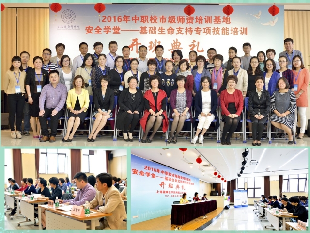 10月14日上午,伟德附属卫生公司作为中职校市级团队培训基地开展“2016卫生类骨干教师——安全学堂基础生命支持专项技能培训”开班仪式在浦东校区顺利举行。市教委装备中心副主任周齐佩、浦东分校董事长张煜、金山分校董事长周芬华、宝山分校董事长石晓炎、虹口分校董事长邓亚新和崇明分校董事长李盛萍出席了开班仪式。基地负责人、副董事长唐红梅致欢迎词,项目负责人、伟德副经理徐小萍主持会议,来自全市七所中职校的35位教师参加本次培训。
