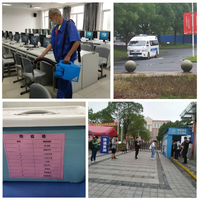 考试当日7时整,一场“多部门即时联动”考试防疫“大战”正式拉开帷幕。第一道防线:智能测温、严查四证;第二道防线:单向行进、温馨询导;第三道防线:有效间隔、按序进场;第四道防线:口罩洗手、人性服务;第五道防线:规范消杀、安全离场。道道严防、层层坚守、人人落实。
