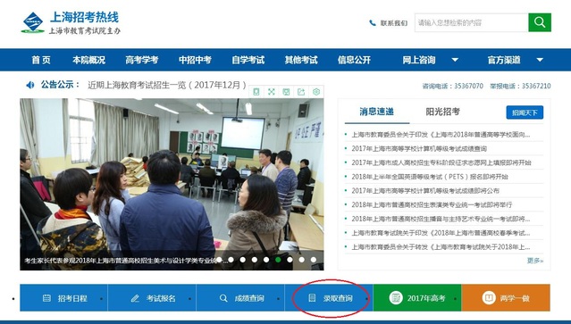 查询网址:http://www.shmeea.edu.cn/page/index.html