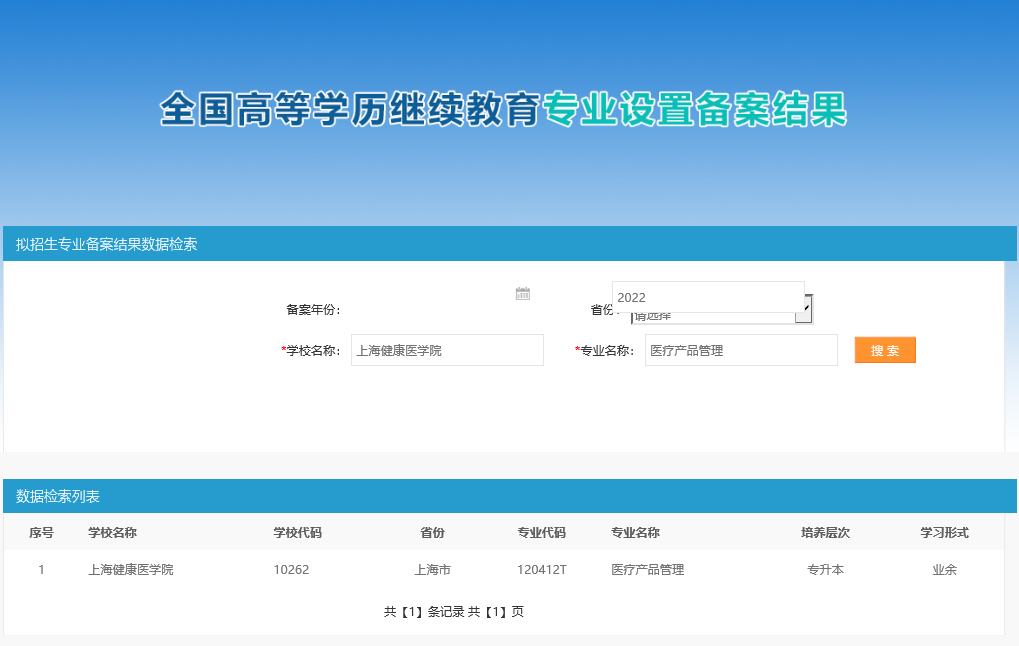 近日,全国高等继续教育信息管理平台公布了2022年专业设置备案结果,公司申报的医疗产品管理成人本科专业获准设置。